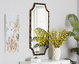 Features: Constructed from rubberwood, MDF wood, and LVL Walnut brown finish Rectangular mirror Bamboo-like embellishments Scallopped corners Vertical orientation Set Includes: One (1) Mirror