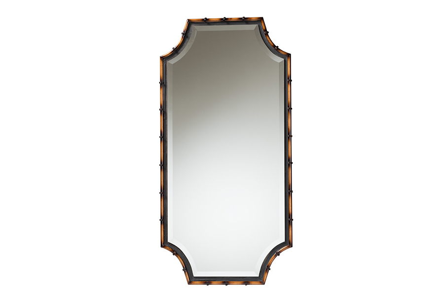 - Emilia Rustic Two-Tone Light Brown and Black Finished Metal Accent Wall Mirror