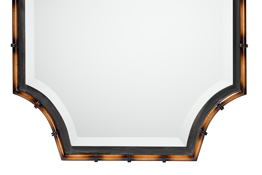 Impart a classic elegance to your space with the rustic opulence of the Emilia accent wall mirror. Made in China, this glamorous piece consists of a solid metal frame fitted with a large central mirror. Scalloped corners create a geometrically pleasing silhouette, while ringed accents along the frame create a display reminiscent of bamboo. The Emilia will arrive fully assembled and is wall-mountable. An endowment of unassuming luxury, the Emilia brings a remarkable aura to any interior.