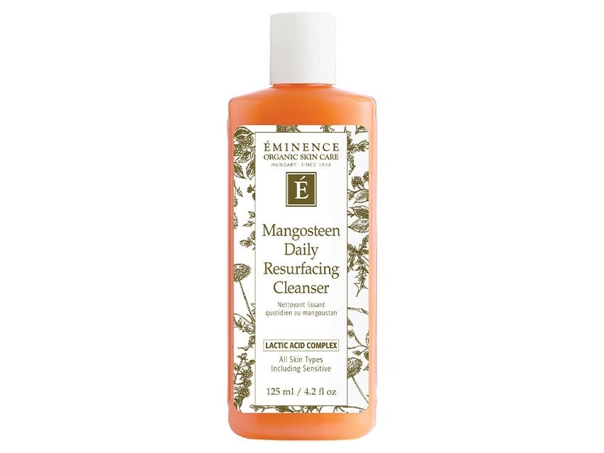 Eminence Mangosteen Daily Resurfacing Cleanser is a refreshing, milky gel cleanser that combines the power of antioxidant-rich mangosteen with a Lactic Acid Complex to gently resurface and brighten the complexion. Designed to extend the benefits of a professional peel or treatment at home, this award-winning cleanser lightly lathers to lift away dead skin cells, surface buildup, and impurities without harsh scrubbing. It works to refine pores, smooth uneven texture, and restore radiance while maintaining the skin?s natural moisture balance. With consistent use, the complexion appears clearer, more luminous, and rejuvenated, making this an essential step for daily care and long-term skin health.