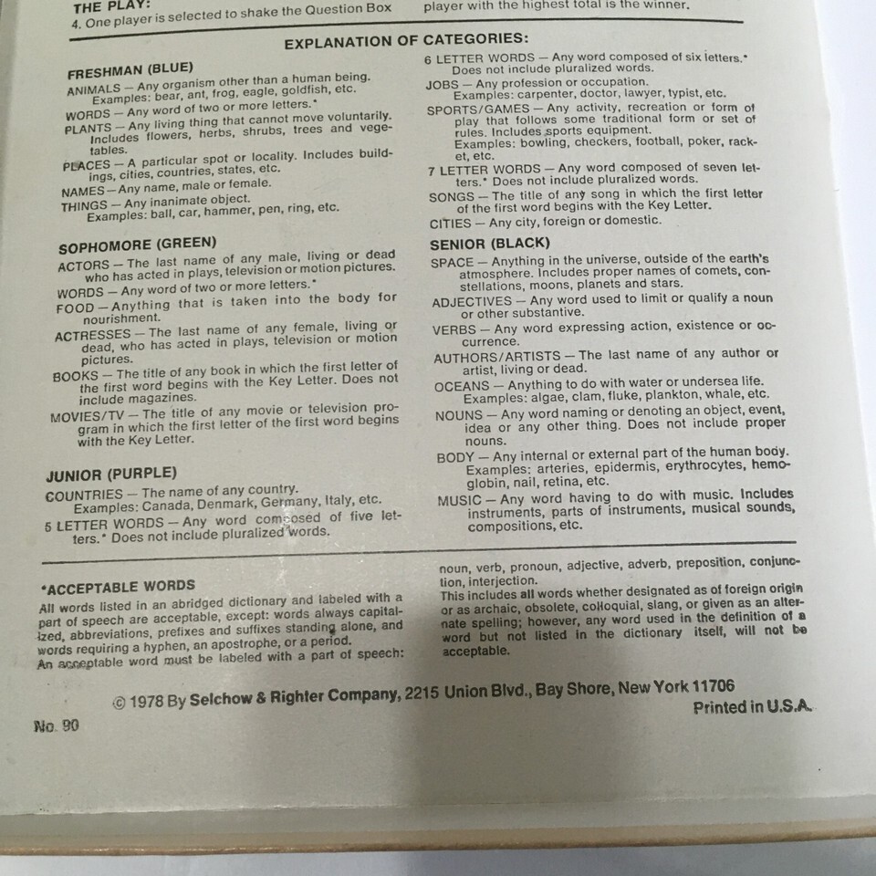 - Empty box only for vintage game Quick Quiz movie photo prop