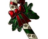 - Enamel Candy Cane Brooch Christmas Rhinestones Leaves Bow Jewelry Holiday Pin