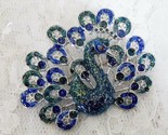- Enameled Blue/Green/Silver Peacock Pin 2" tall x 2 1/2" wide Beautiful!