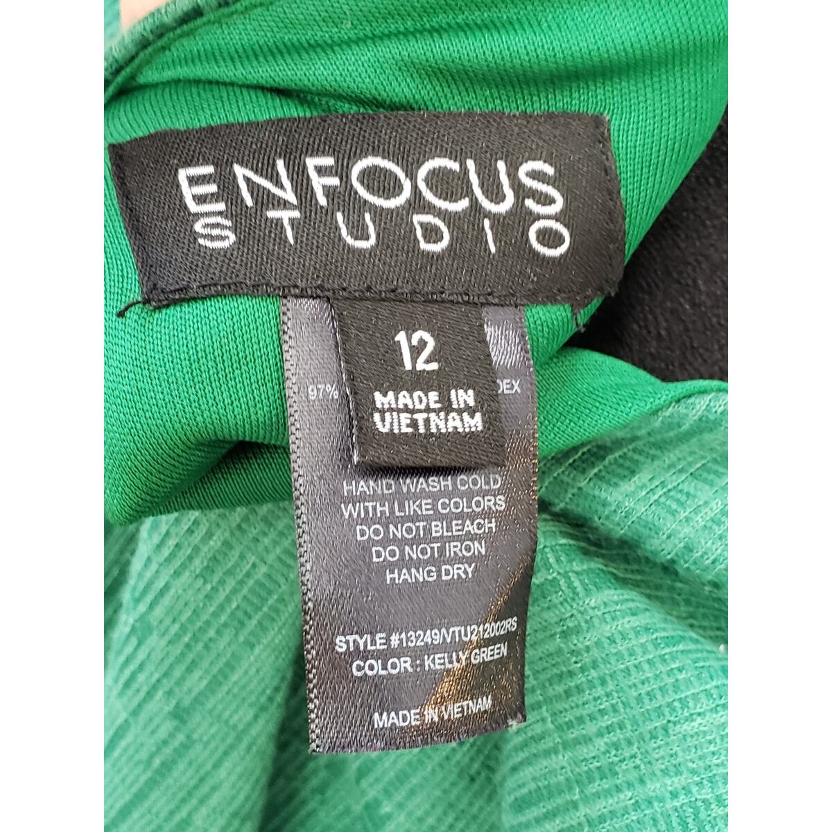 - Enfocus Studio Fit & Flare Dress Womens Size 12 Green Sleeveless Button Detail