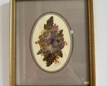English Country Flowers Pressed Behind Glass in Small Gold Frame Wessex Vintage
