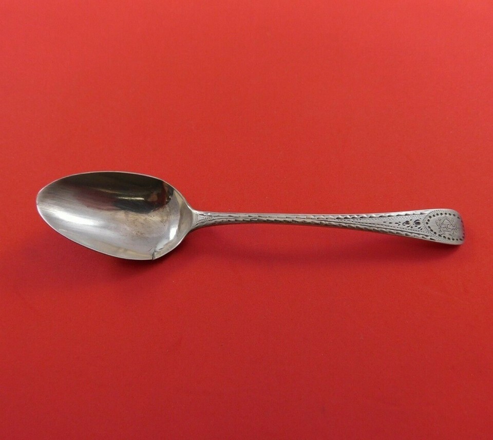 English Georgian Sterling Silver Coffee Spoon Engraved Handle 5 1/2"