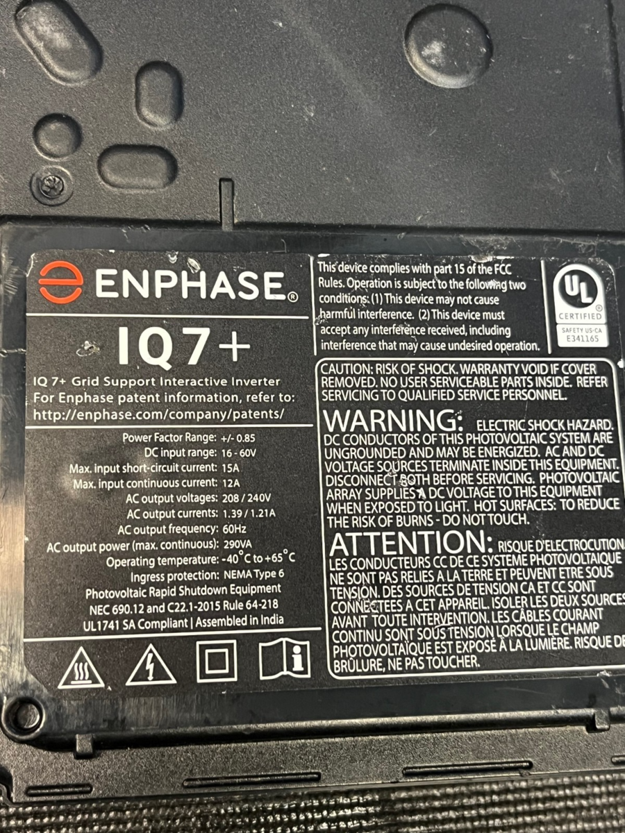 - Enphase IQ7PLUS-72-2-US 295W Solar Microinverter MC4 Version