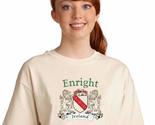 Enright Irish Coat of Arms Tee Shirt in NaturalEvery Irish family has a story to tell, probably hundreds of stories. Your Irish coat of arms is a visual record of your family's oldest, most significant stories. Here, they're told in bright, permanent artwork on these fine-quality, all-cotton tee shirts. Authentic Irish Family Coat of Arms 100% Cotton Gildan Tee Shirt Over 25 years of Heraldry Research Printed with four color permanent process(no cracking or peeling-guaranteed) Choose from over 1000 available family coat of arms.