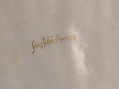 Ceci est un bel ensemble de couteaux de fruits de Saks Fifth Avenue, avec des poignees de perles exquises et des lames en acier inoxydable. Les couteaux presentent un style art elegant et ont ete fabriques au Royaume-Uni entre 1920 et 1949. L'ensemble est disponible dans une boîte d'argenterie pour la garde. Parfait pour les collectionneurs ou toute personne qui cherche a ajouter une touche de sophistication a sa cuisine ou a sa table a manger.