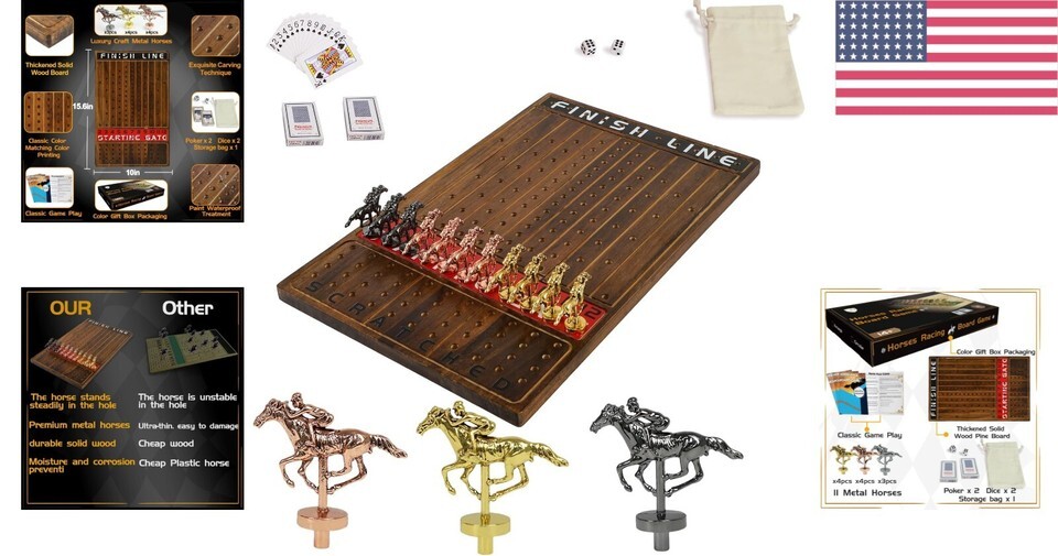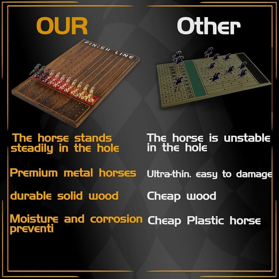 - Entertainment Redefined: Horse Race Board Game with Thick Wood & Metal Horses