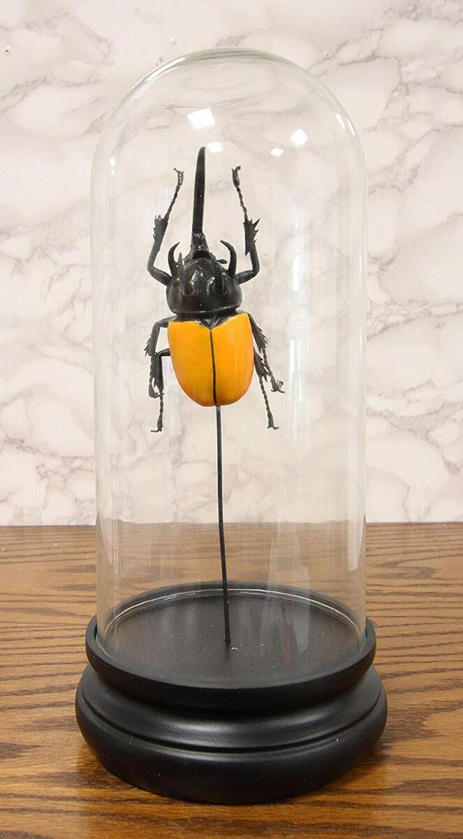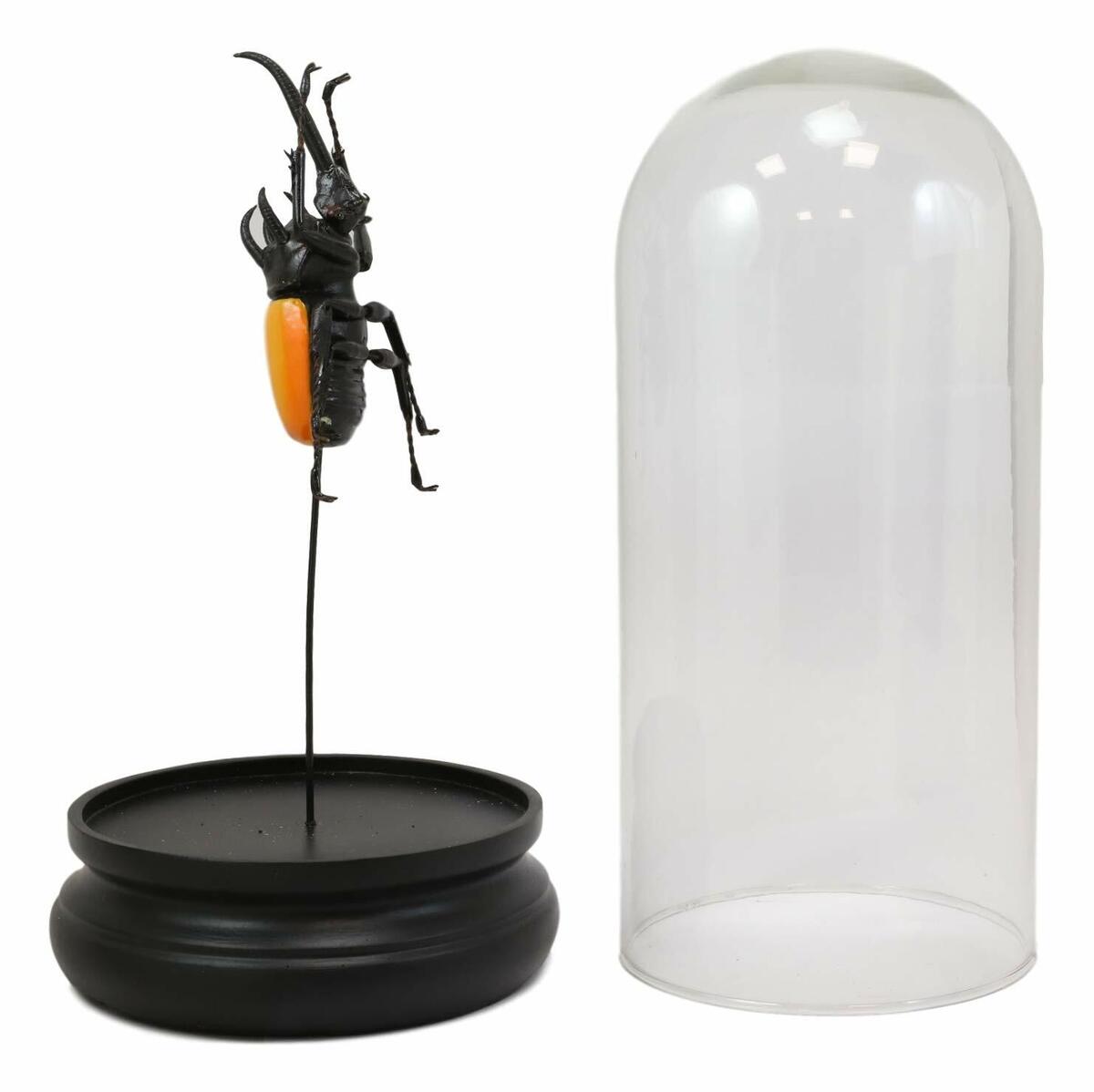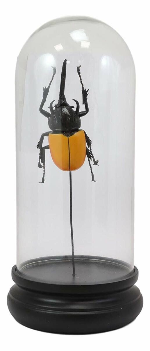 - Entomology 3 Horned Rhino Beetle Faux Taxidermy Sculpture in Glass Dome Cloche
