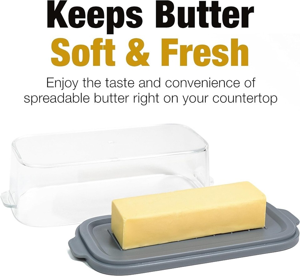 ?Keeps Butter Fresh Soft: No more taking cold, hard butter from the fridge when you want a quick breakfast! This large butter dish with lid keeps butter fresh spreadable while protecting it from airborne contaminants. Helps keep kitchen tidy too!