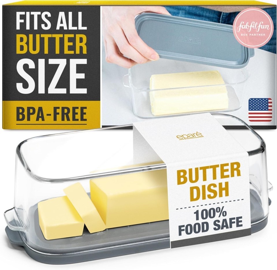 - Eparé Large Butter Dish With Lid For Countertop BPA-Free 7.9"L x 3.35"W x 2.48"H