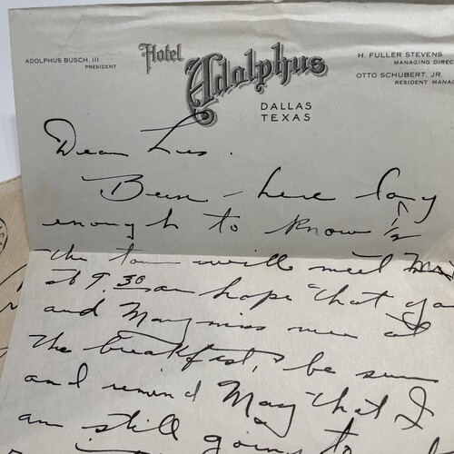 - Ephemera Hotel Adolphus Letter In Envelope 1942