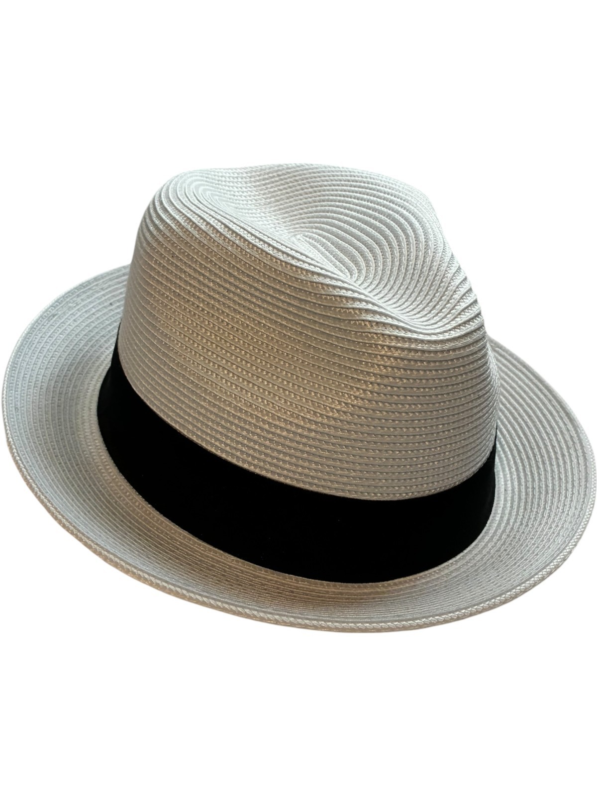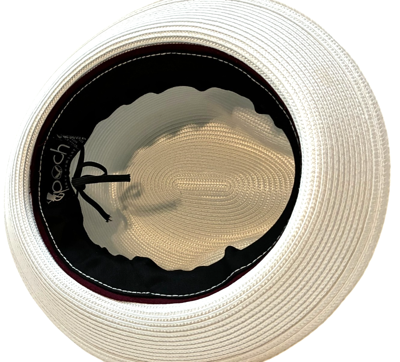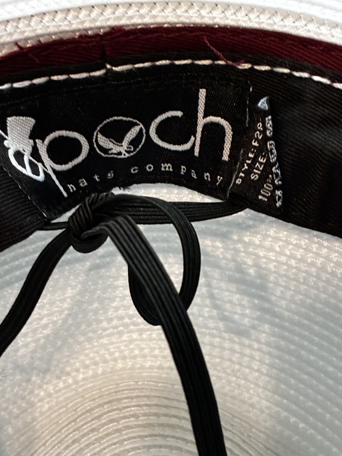 - Epoch Poly Braid Straw White F2810 Fedora size S/M w/Grosgrain Band & Feather