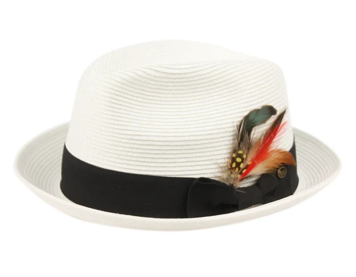 Poly Braid Straw Fedora Hats With Grosgrain Band And Removable Feather