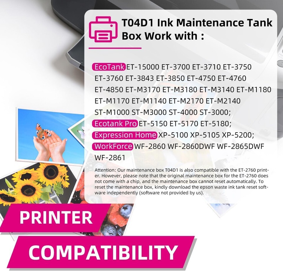 Say goodbye to interruption and frustration with our reliable Epson 00 Ink Maintenance Box. Designed for utmost compatibility and ease of use, this maintenance box demonstrates high-quality craftmanship while providing smooth, flawless prints that truly stand out. The included accessories simplify the setup process, allowing you to focus on what matters most ? your printing projects.