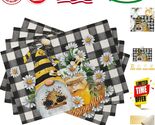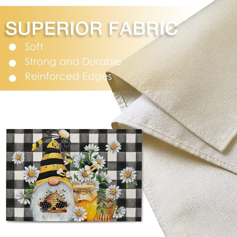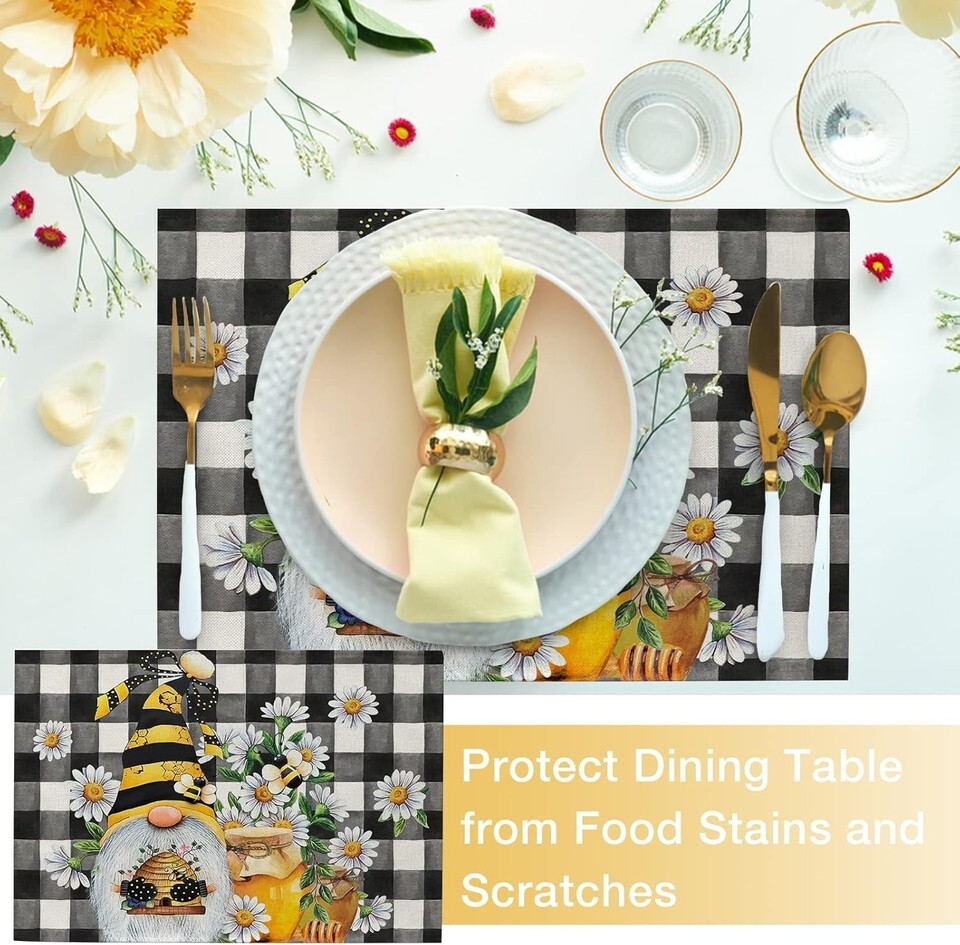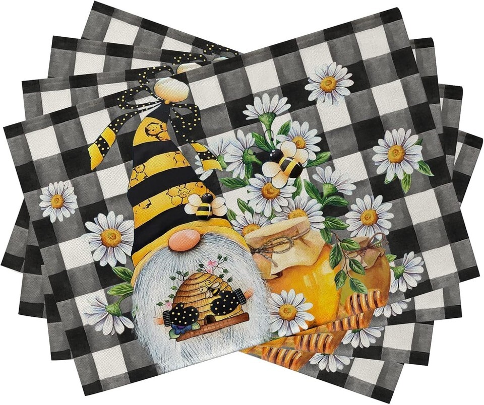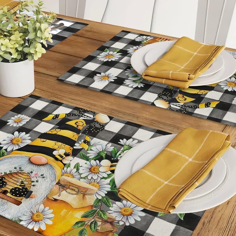 - Ergonomic 12 x 18 Bee Gnome Placemats in Honey & White Buffalo Check Set of 4