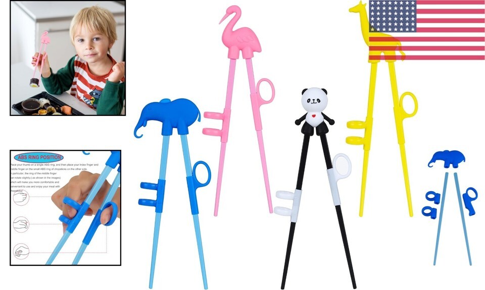 - Ergonomic 4-Set Toddler Chopsticks with Removable Animal Toppers - Easy to Use!