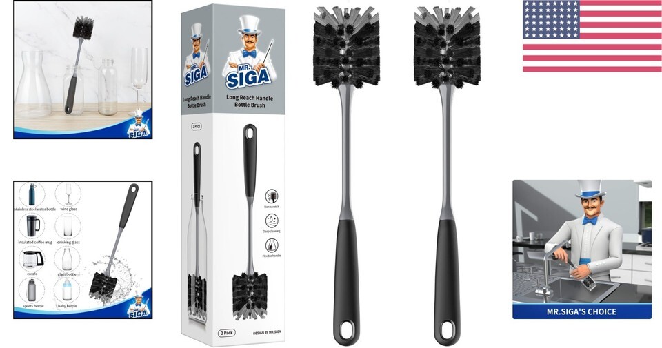 Whether you're a health-conscious individual who takes their reusable bottles on-the-go or someone who cherishes their collection of fine glassware, this brush is the perfect solution. Experience effortless cleaning, durability, and comfort - order your 2-pack of Ergonomic Long Handle Bottle Brushes today!
