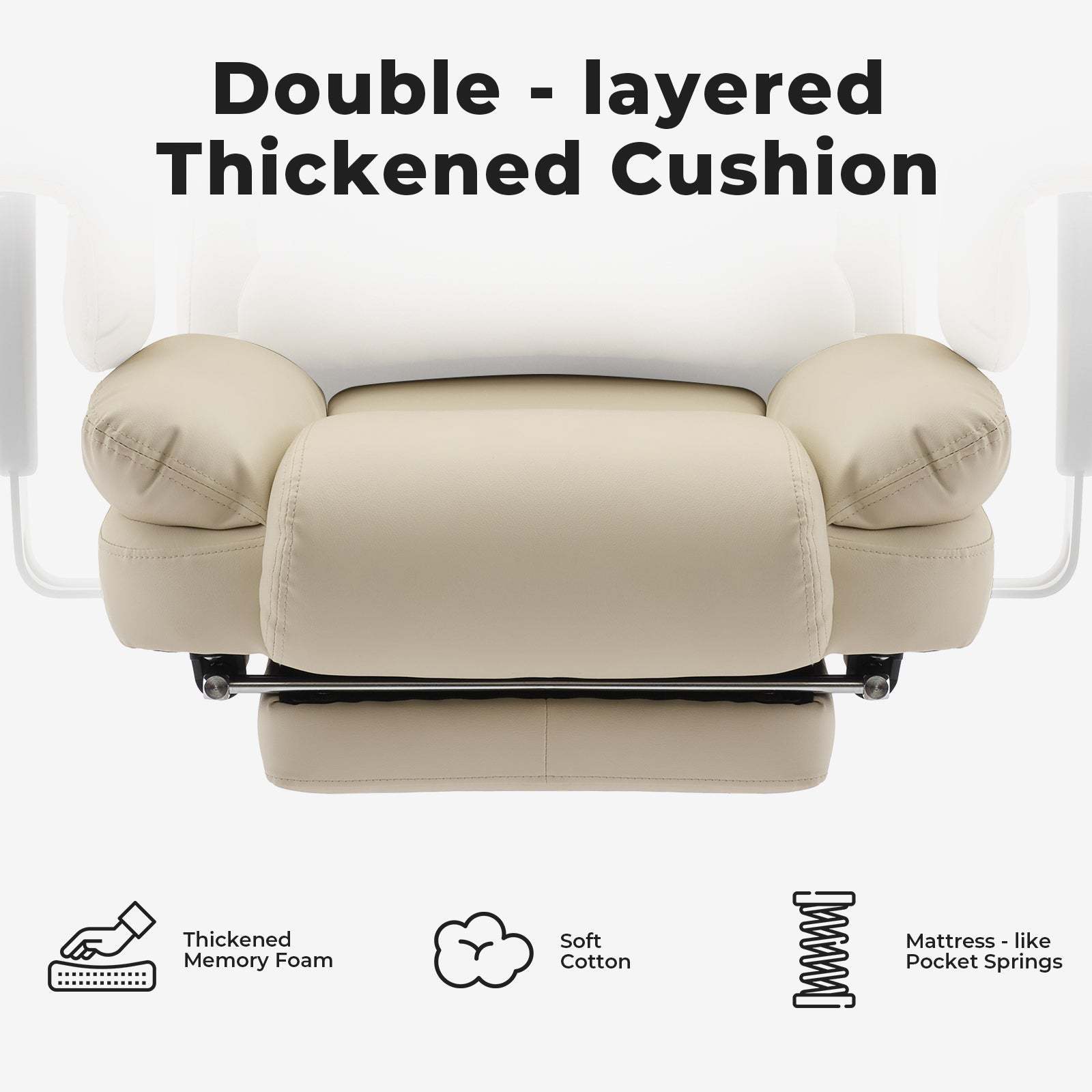 Ergonomic Office Desk Chair High Back 200kg PU Leather Lumbar Beige