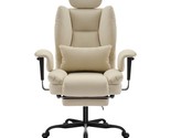 - Ergonomic Office Desk Chair High Back 200kg PU Leather Lumbar Beige