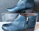 Eric Michael women's size 39/8.5 London leather booties. Soft blue leather upper with side zipper. Leather lining and lightly cushioned insole, rubber outsole. Made in Spain. Excellent condition with normal wear as shown in photos.