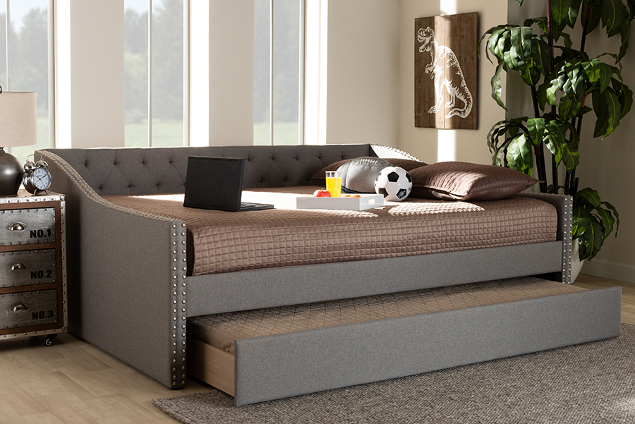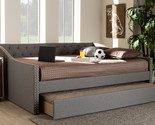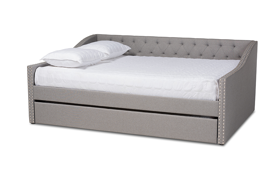 - Erla Light Gray Fabric Upholstered Full Size Daybed w/Roll-Out Trundle Bed