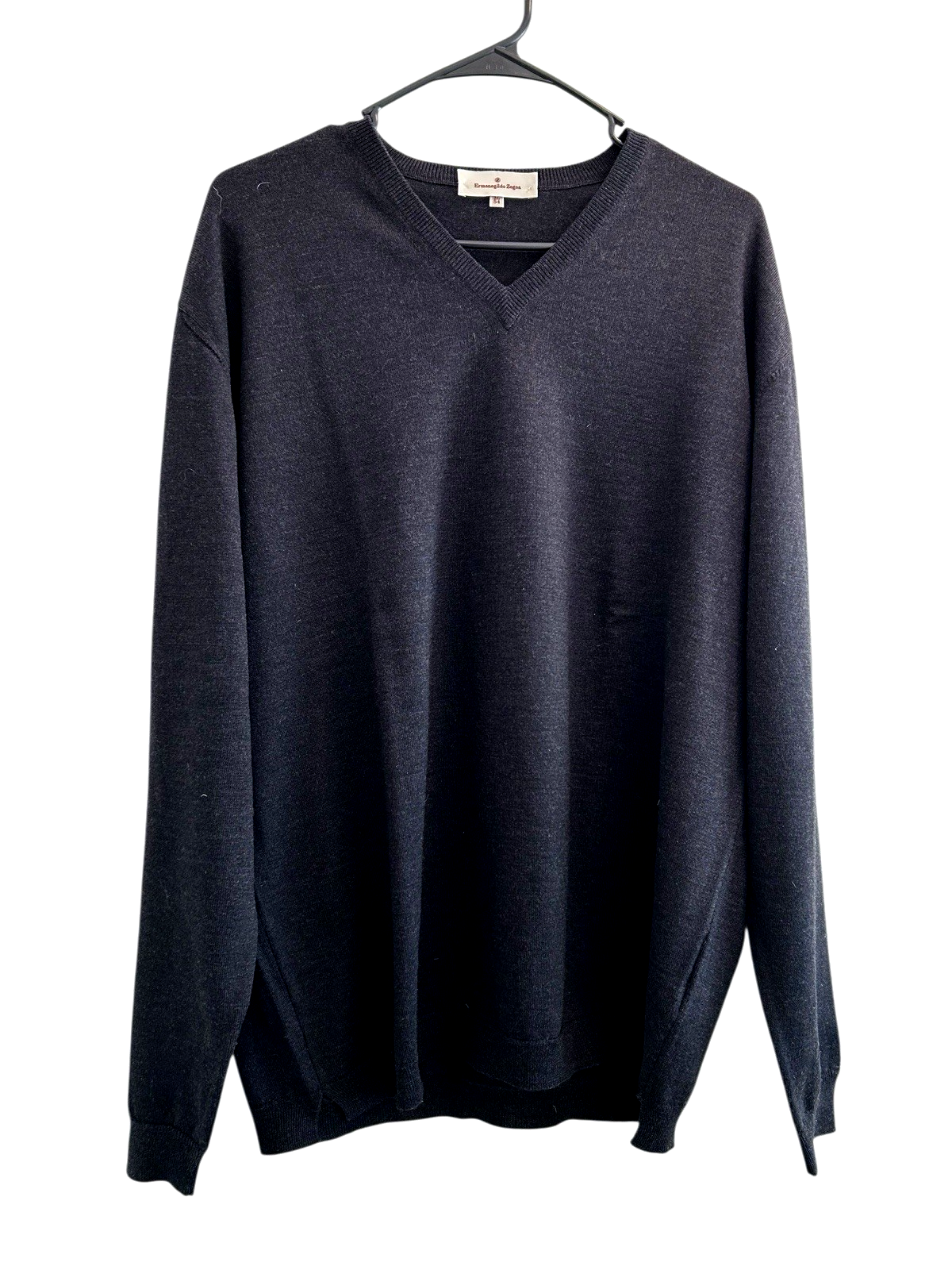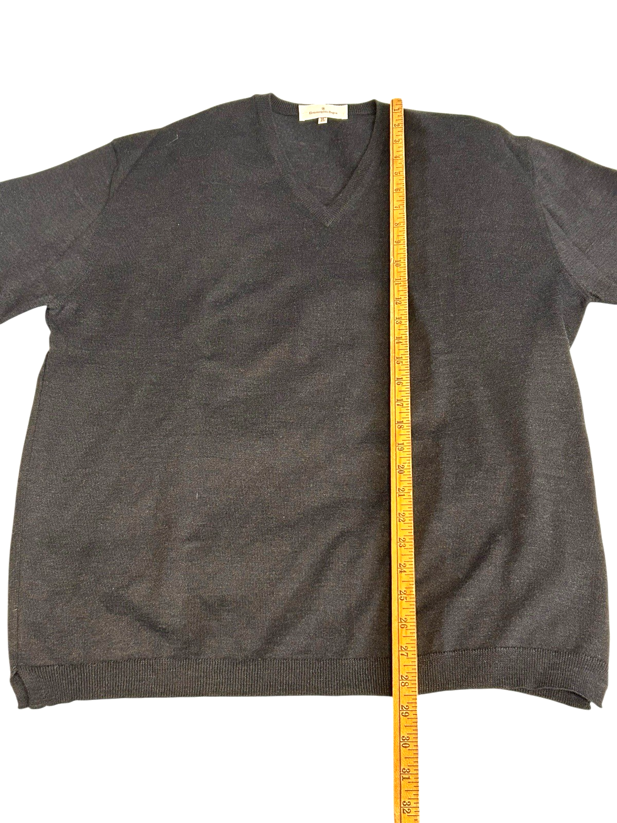 - Ermenegildo Zegna Sweater Men XL 54 Black 100% Wool V Neck Made in Italy Jumper