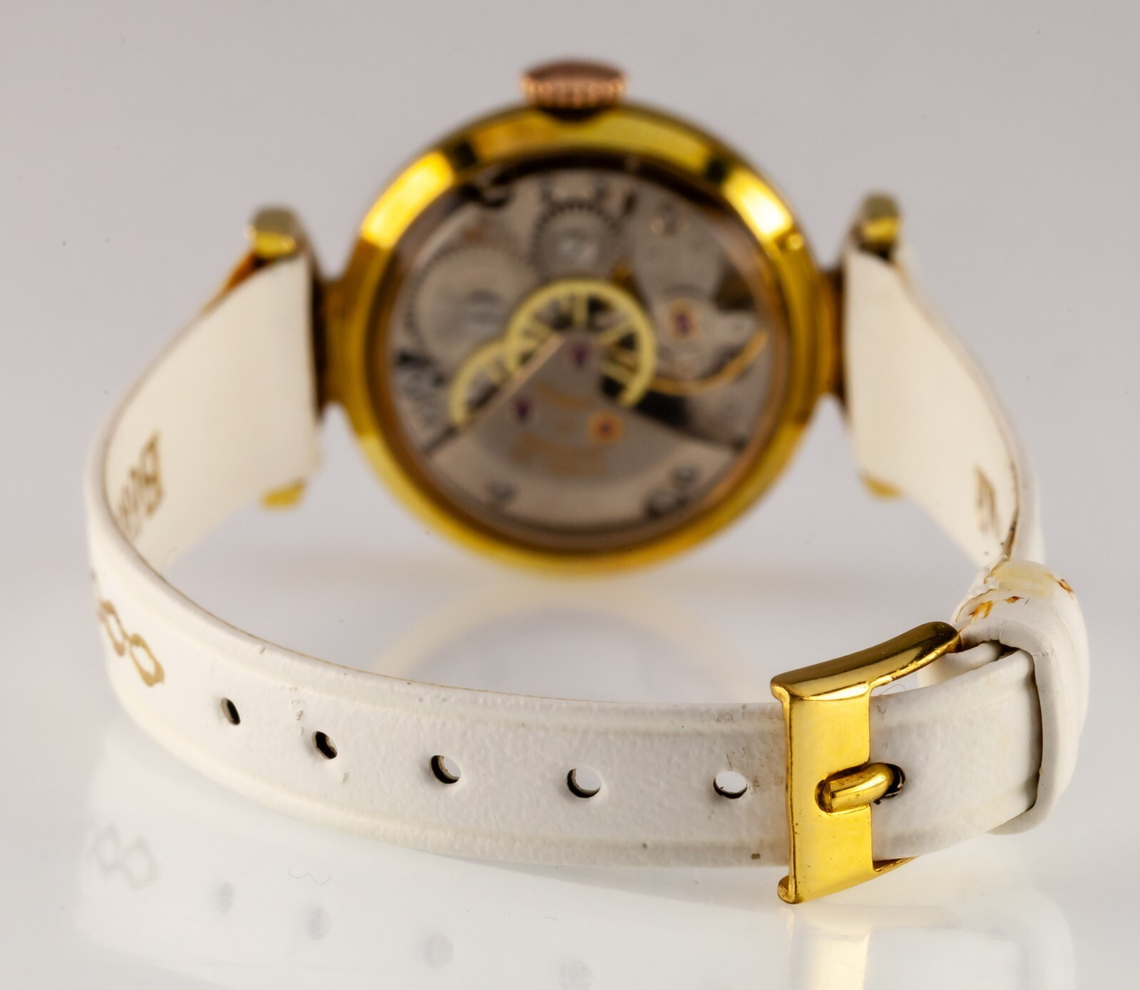 Ernest Borel Galeidoscopio femminile placcato in oro con una nuova fascia in pelle bianca