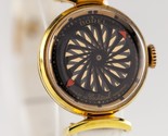 Vintage Donna Gruen Placcata Oro Mano-Avvolgimento Art Deco Orologio W/ Pelle