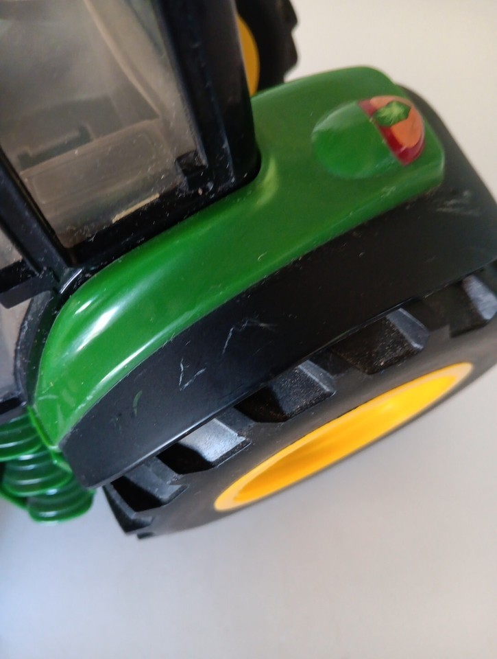 This is a great opportunity to own a fantastic John Deere #7420 Tractor from ERTL's Farm Country series. The tractor comes in a vibrant green color and is made of high-quality plastic material. It has some damage, but it is still a great addition to any collection. The tractor is missing the hood and rear window, but it is still a great opportunity to own a piece of farm tractor history. The vehicle was manufactured in China and belongs to the Farm Tractor character family. It is perfect for any collector or fan of John Deere tractors. Normal wear. See Pictures, NOTE THE MISSING PARTS AND DAMAGE