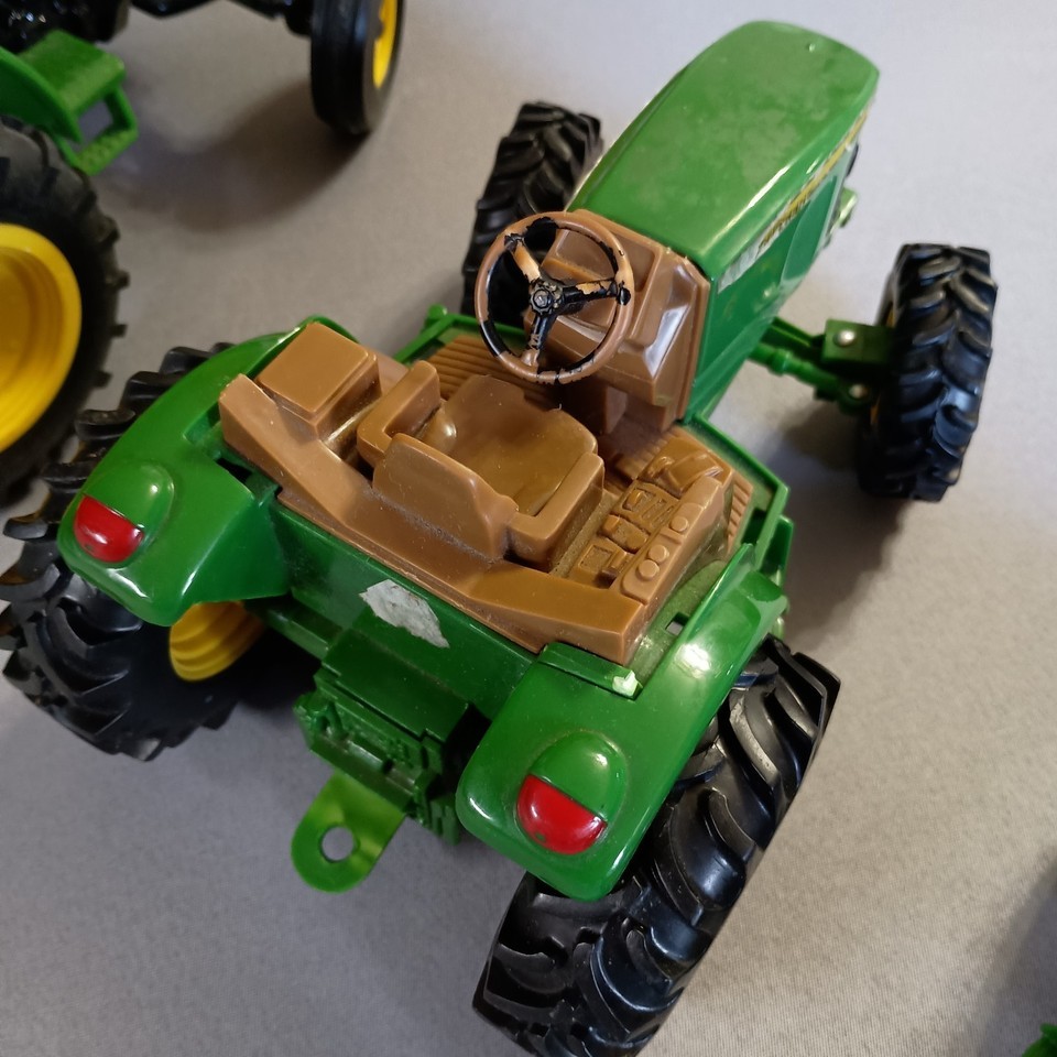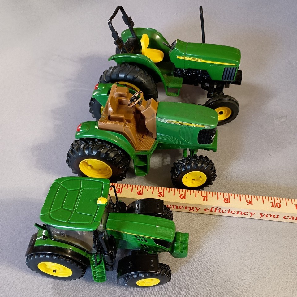 Ertl John Deere Tractors Mixed Lot of 3. All are diecast and plastic. All have damage or missing parts, pieces, normal wear, scratches etc. See pictures. Scale sizes are unavailable. Sizes are approximate.