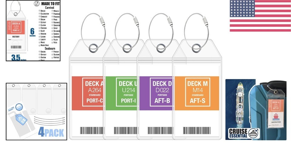 - Essential 4 Pack Cruise Luggage Tags - Waterproof, Fits All 2025 & 2026 Ships