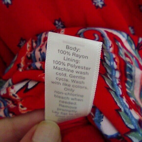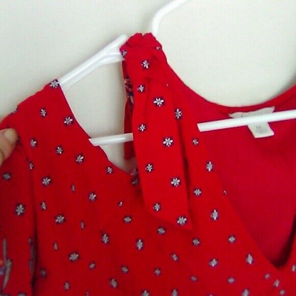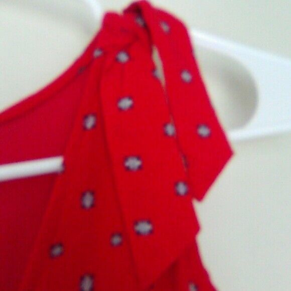 Nice used condition. Flowy, Rayon with layer underneath. Ties at shoulder. Cold should bat sleeves. Red paisley.