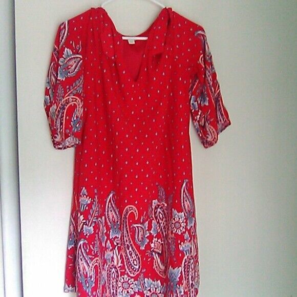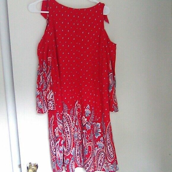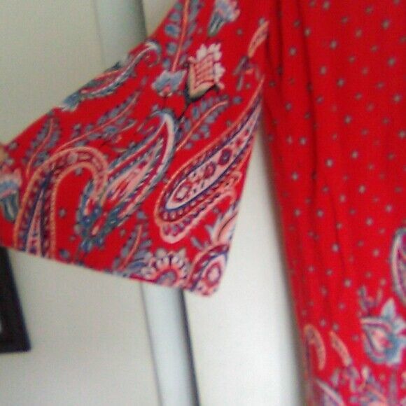 - Est. 1946 red paisley boho dress cold shoulder sz med big sleeves
