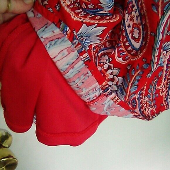 Est. 1946 red paisley boho dress cold shoulder sz med big sleeves