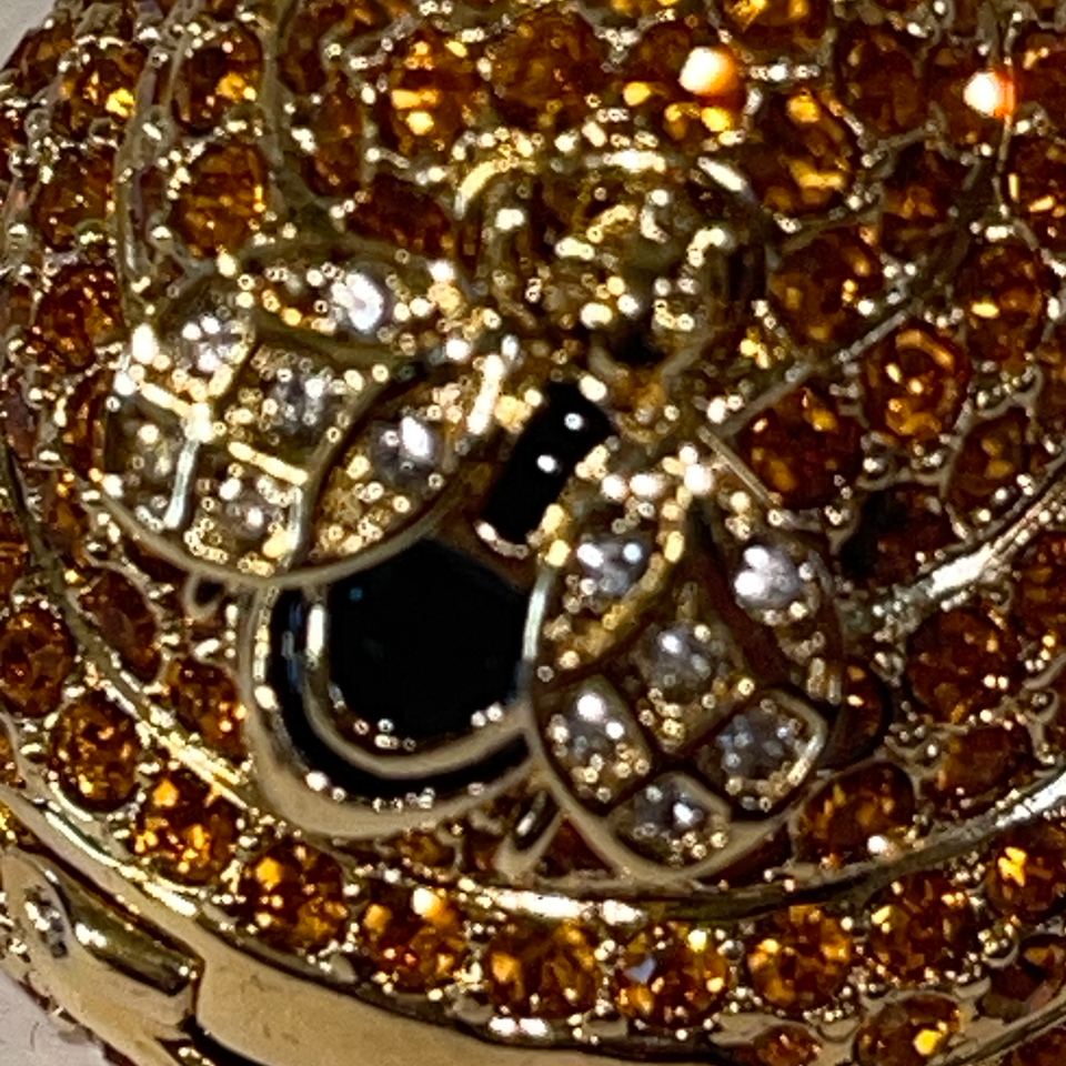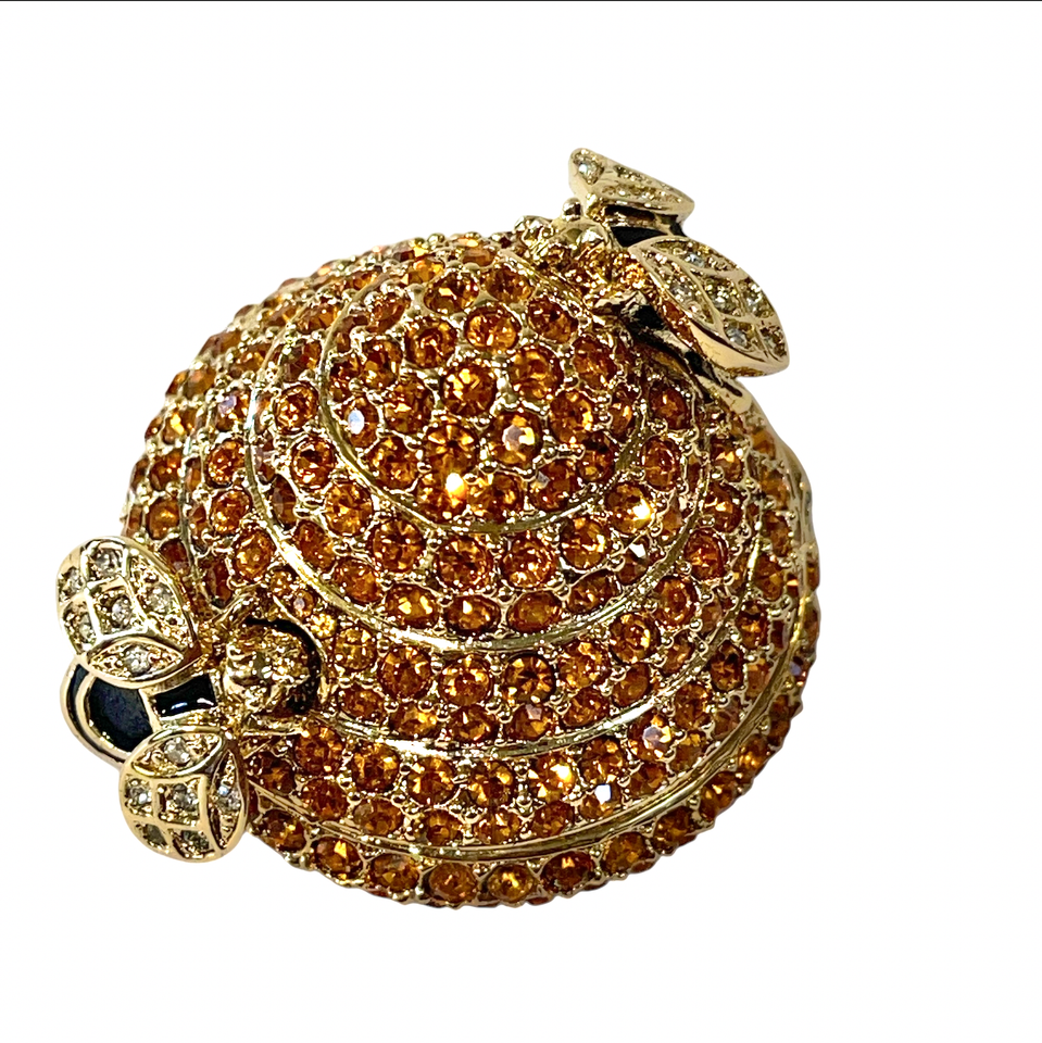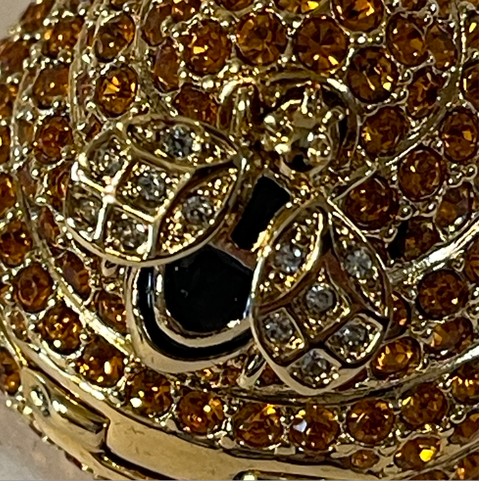 New old stock. This is an absolutely gorgeous piece. Photos do not do it justice. Simply stunning. Estee Lauder Beehive Compact for Solid Perfume. Honeybees fill the world with a thousand flowers to keep romance alive. And creat sweet sips of honey for all to enjoy. Gold tone with crystals. Made in canada. Gorgeous exquisite piece. The original perfume is included. Note to buyers: This compact is sold as a collectible piece. Its age and history may make it better suited for display rather than use! Set includes original presentation boxes and dust bag. Please see all gallery photos. We are a smoke free, pet friendly home. Have a great day!