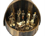 Features This Nativity set is handcrafted out of banana fiber wrapped on wire Includes a 10 by 7 inch handmade banana fiber box for storage and display The tallest piece is 5 inches high