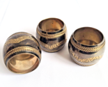 Etched Brass Napkin Ring Holders Floral Embossed Gold Tone India Lot Of 3 Vtg