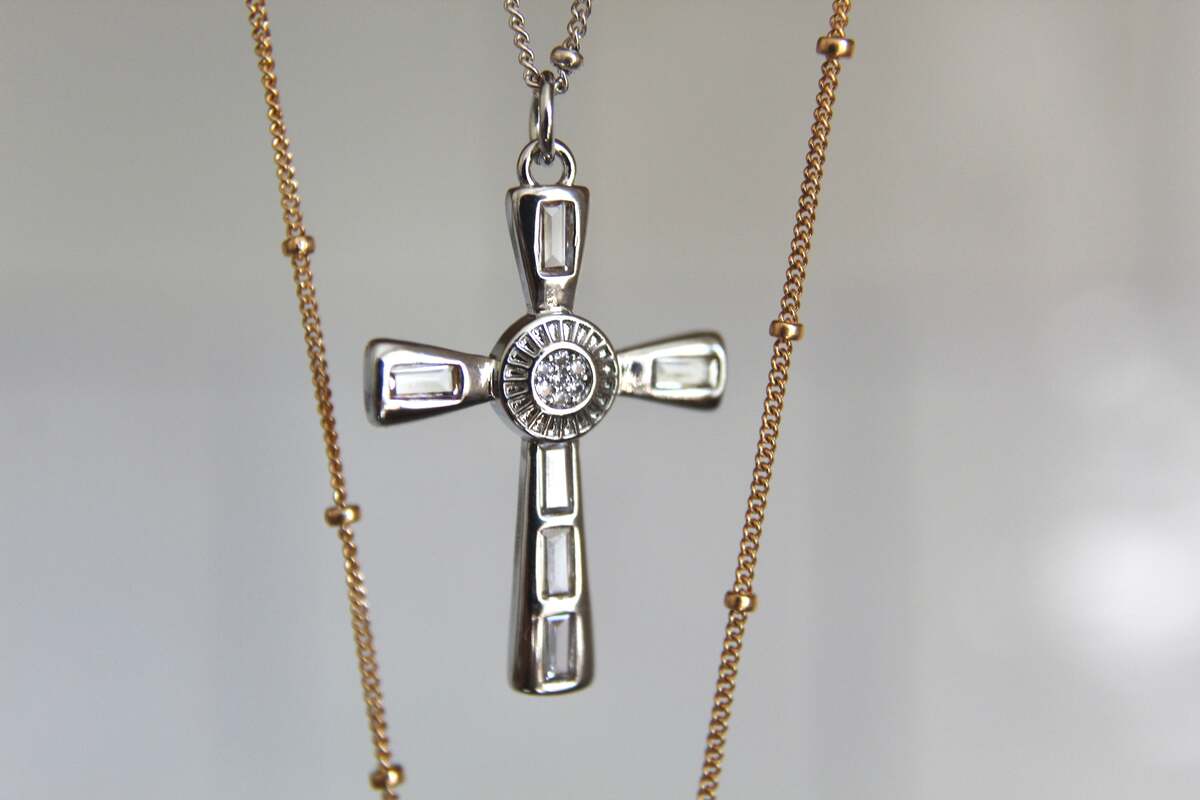 A symbol of timeless devotion and grace with our Eternal Cross Necklace in Silver Tone. Crafted with precision and love, this exquisite piece of Catholic jewelry is designed to express your faith with elegance and style.