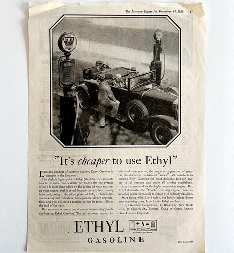 - Ethyl Gasoline Co 1928 Advertisement Lithograph Classic Car Gas Pump DWCC5