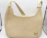 - Etienne Aigner Vintage Basket Weave Ivory Leather Trim Top Handle Purse