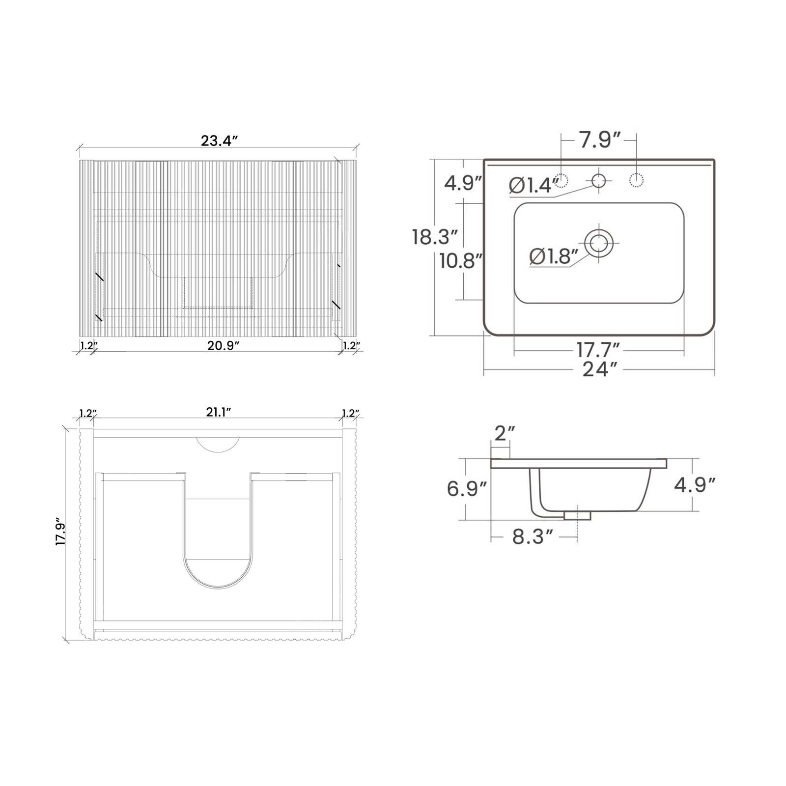 Glossy White Integrated Ceramic Sink: The vanity comes with a glossy white integrated ceramic sink that exudes luxury and charm. Its smooth surface is easy to clean and complements the vanity's overall design seamlessly.