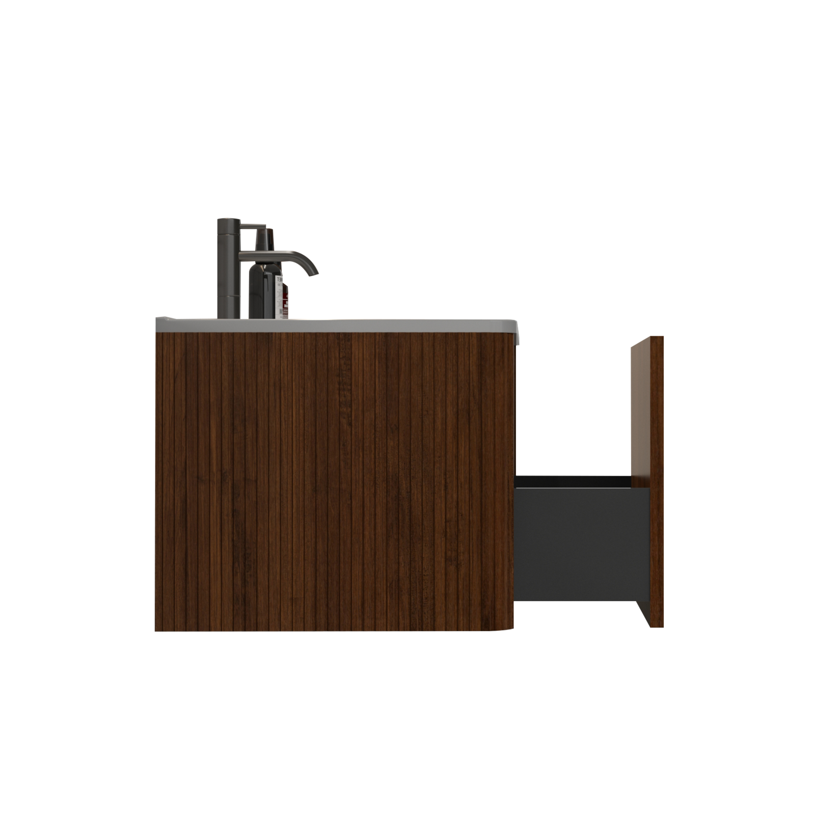 Fashionable Striped Walnut Texture Look: Etna boasts a trendy striped walnut texture finish, adding a touch of sophistication to your bathroom decor. The rich wood grain pattern elevates the vanity's aesthetic, making it a standout piece in any bathroom setting.