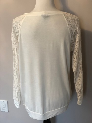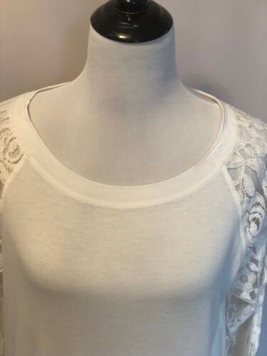 - EUC BOBEAU White Lace Sleeve Boatneck Jersey Top SZ L