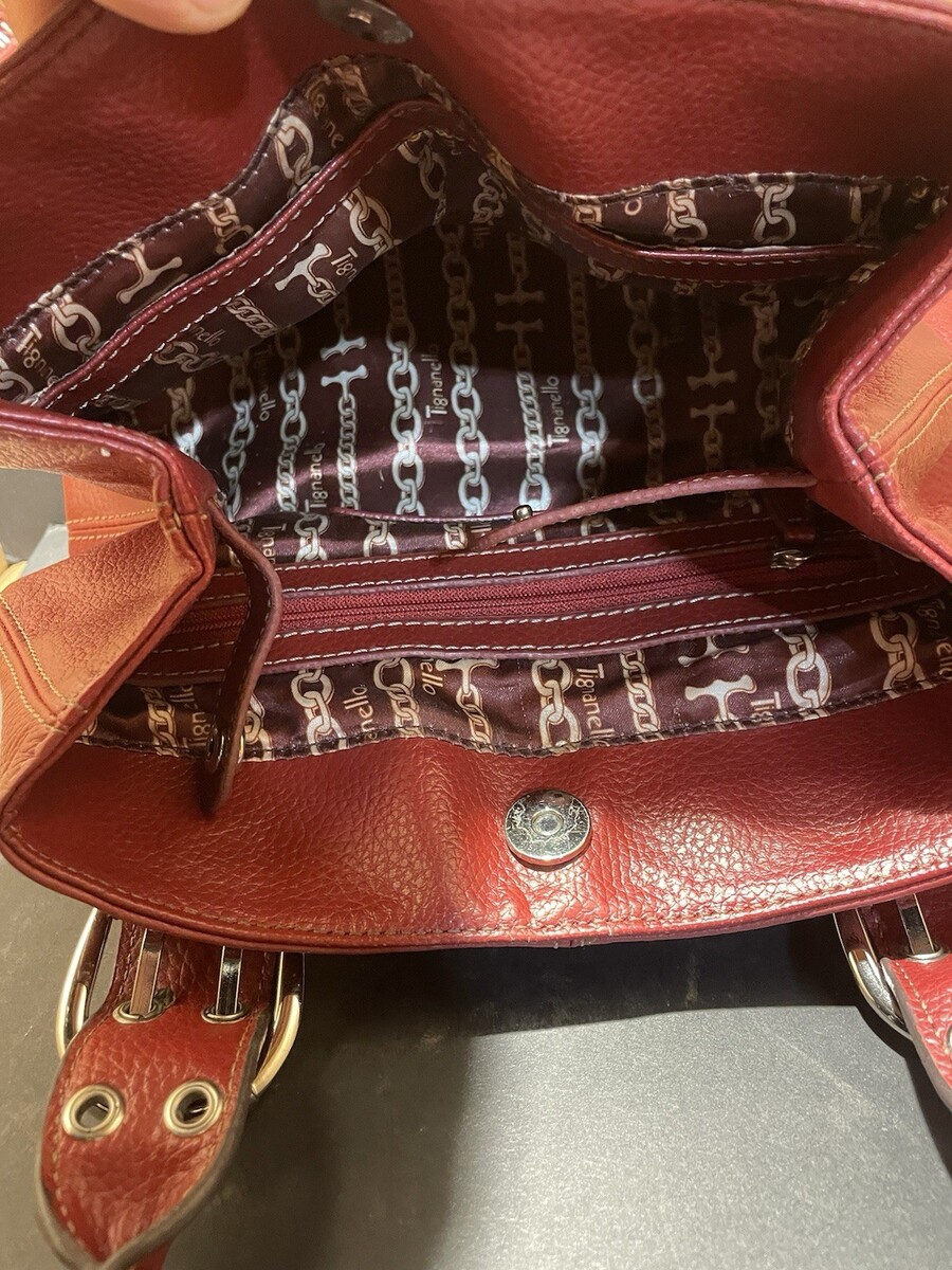 - EUC TIGNANELLO Red Softened Pebbled Leather Handbag Purse W/Bottom Studs