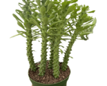 Botanical Name: Euphorbia Guentheri Common Names: Sausage SpurgeDescription: A stout perennial succulent herb with long, cylindrical stems, with prominent spine-tipped tubercles and fleshy sickle-shaped deciduous leaves. Flowers small with a red rim-like gland and enclosed in two fused greenish-white bracts with lovely purple mottling. At yet very few species of this Genus are to be found in collections but this one is one of the older species described during the early part of the twentieth-century Euphorbia succulent varieties are easy to grow and are suited to any well drained soil in full sun. They grow well when there is a layer of brick and charcoal pieces, on top of which sandy loam soil is spread. They need little maintenance. Young plant are happy growing indoors.