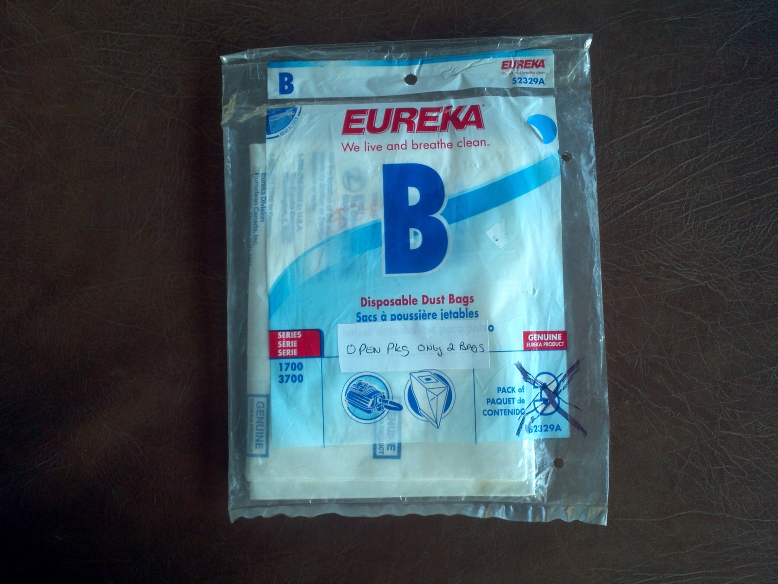 - EUREKA TYPE B DISPOSABLE DUST BAGS 52329A ( OPEN PKG )