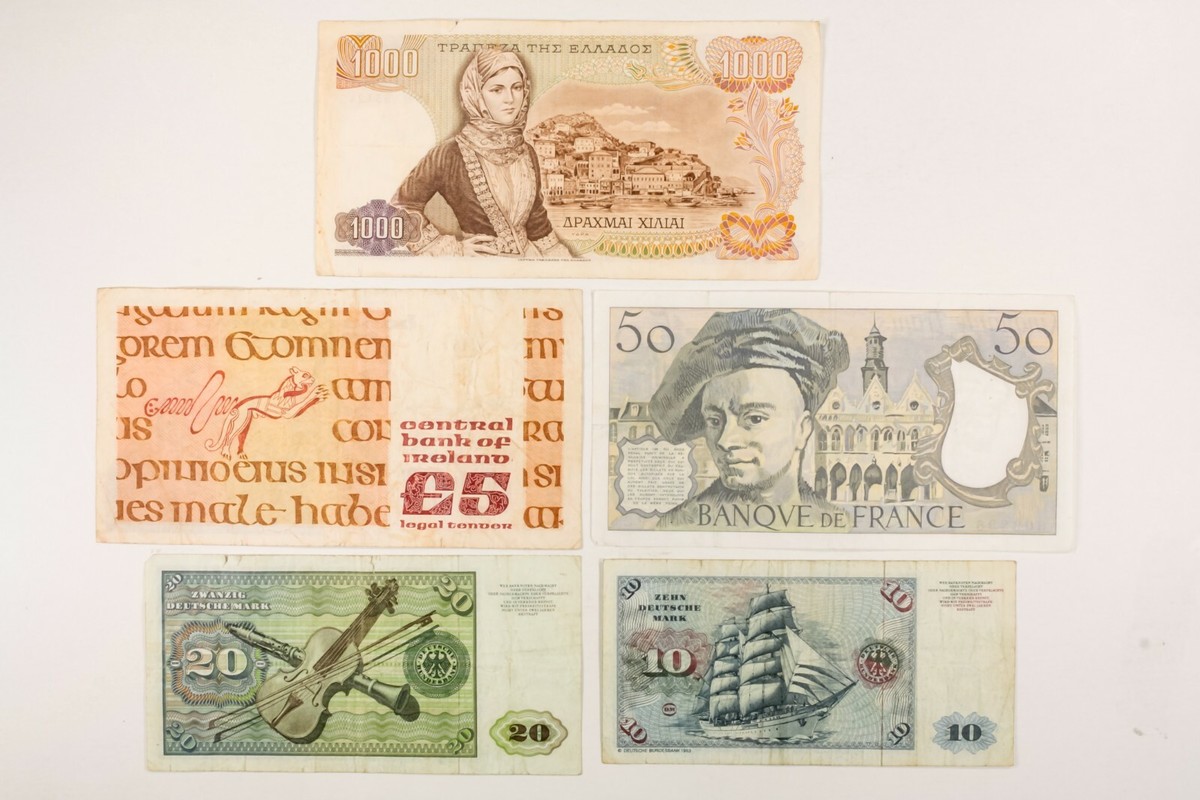 - Europe Miscellaneous Notes. 5 Note Lot. VF - XF France, Germany, Greece, Ireland